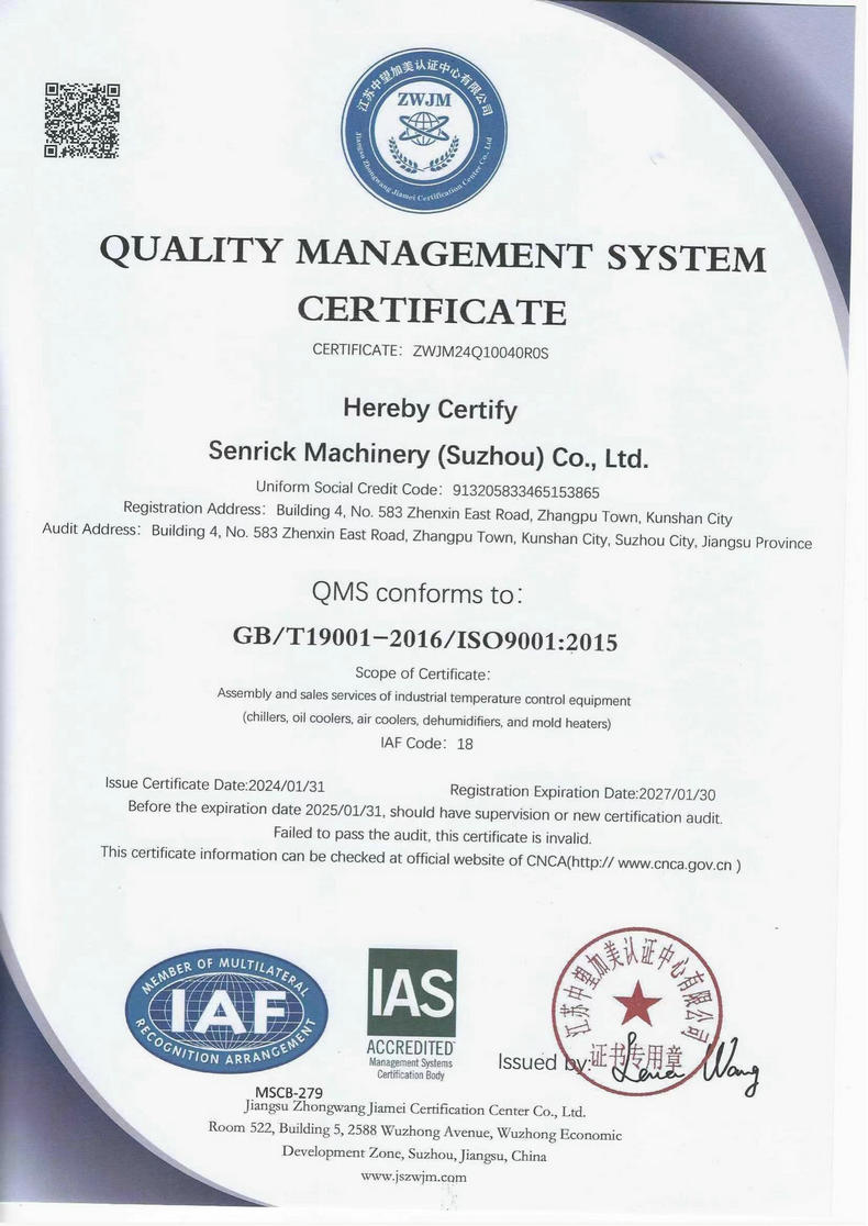 森瑞克機械(蘇州)有限公司(簡稱:SENRICK)是一家中外合作性企業(yè),引進技術(shù),專注于工業(yè)制冷設(shè)備,工業(yè)溫控設(shè)備,非標(biāo)制冷設(shè)備,集激光,化工,真空設(shè)備輔機等集研發(fā)、生產(chǎn)、銷售、服務(wù)于一體的的現(xiàn)代化科技企業(yè)。公司擁有完善的制造設(shè)備,先進的檢測系統(tǒng),獨立的加工、生產(chǎn)工藝,一支開拓創(chuàng)新專業(yè)有素的技術(shù)人才團隊,以及全面的質(zhì)量控制體系,為產(chǎn)品質(zhì)量的不斷優(yōu)化提供了強大的保障,以確保滿足不同市場的各種需求。經(jīng)過多年的努力企業(yè)相繼研發(fā)生產(chǎn)出了工業(yè)冷水機,工業(yè)冷風(fēng)機,工業(yè)冷油機,工業(yè)機,低溫冷水機,低溫冷風(fēng)機,低溫冷油機,螺桿式冷水機...
